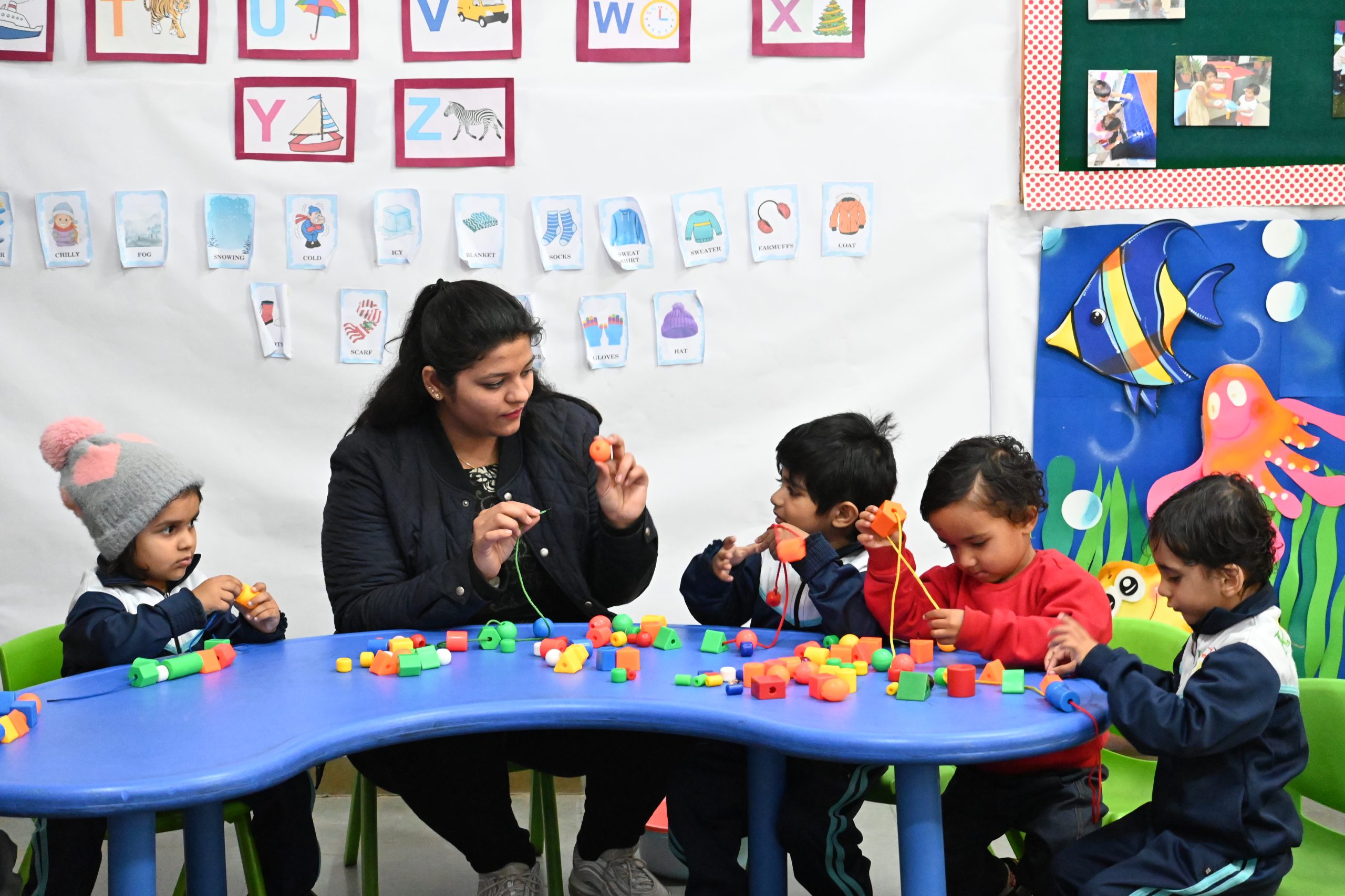 Play group programme is specially designed for the children of 2 to 3 years. In the playgroup classes, the young children spend quality time in developing their motor skills, early Maths skills, language skills, socio- emotional skills and moral values as well.
